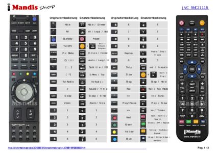 Ein Dokument ist enthalten, um die Verwendung der neuen Fernbedienung zu erleichtern, indem es die Tastenbelegung zeigt.