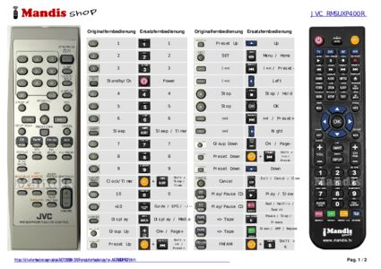 Ein Dokument ist enthalten, um die Verwendung der neuen Fernbedienung zu erleichtern, indem es die Tastenbelegung zeigt.