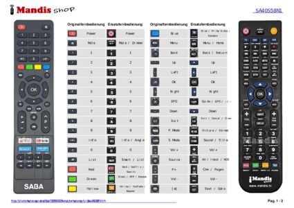 Ein Dokument ist enthalten, um die Verwendung der neuen Fernbedienung zu erleichtern, indem es die Tastenbelegung zeigt.