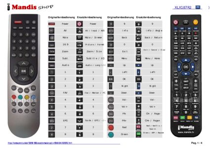 Diese Fernbedienung ersetzt Ihre XLX187R in vollem Umfang und bietet alle Funktionen des Originals.