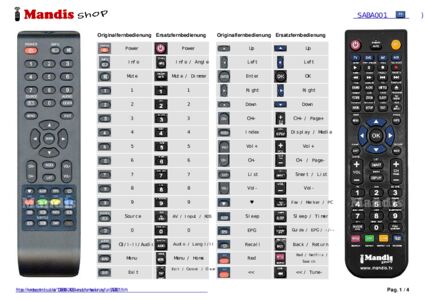 Ein Dokument ist enthalten, um die Verwendung der neuen Fernbedienung zu erleichtern, indem es die Tastenbelegung zeigt.