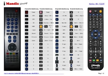Ein Dokument ist enthalten, um die Verwendung der neuen Fernbedienung zu erleichtern, indem es die Tastenbelegung zeigt.