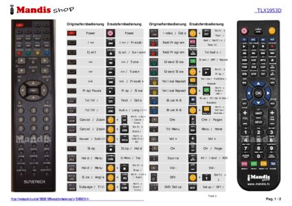 Ein Dokument ist enthalten, um die Verwendung der neuen Fernbedienung zu erleichtern, indem es die Tastenbelegung zeigt.