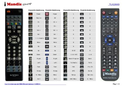 Diese Fernbedienung ersetzt Ihre TL-X2260D in vollem Umfang und bietet alle Funktionen des Originals.