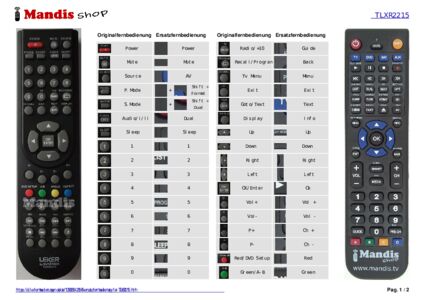 Diese Fernbedienung ersetzt Ihre TLXR1961 in vollem Umfang und bietet alle Funktionen des Originals.