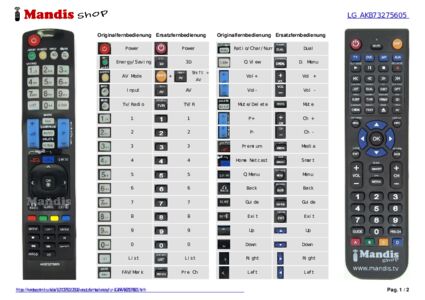 Ein Dokument ist enthalten, um die Verwendung der neuen Fernbedienung zu erleichtern, indem es die Tastenbelegung zeigt.