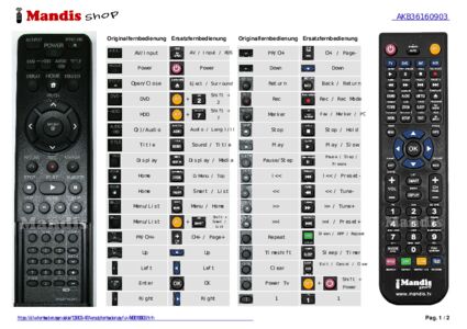 Die original Fernbedienung meines Panasonic Beamers war unreperabl defekt. Ein Ersatz war nirgends zu finden. Zum Glück entdeckte ich Mandis und bestellte die Ersatzfernbedienung nach der Originalnummer. Die nach kurzer Lieferzeit eingelangte Ersatzfernbedienung erfüllt alle, für den Betrieb wesentlichen Funktionen und es gibt dafür eine perfekte Anleitung.Das umständliche Einstellen von Schärfe, Zoom, Menue usw. direkt am Beamer geht jetzt wieder per Fernbedienung. Danke Mandis!!