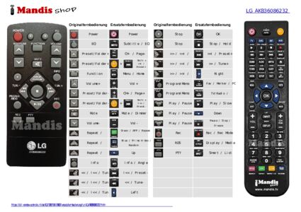 Ein Dokument ist enthalten, um die Verwendung der neuen Fernbedienung zu erleichtern, indem es die Tastenbelegung zeigt.