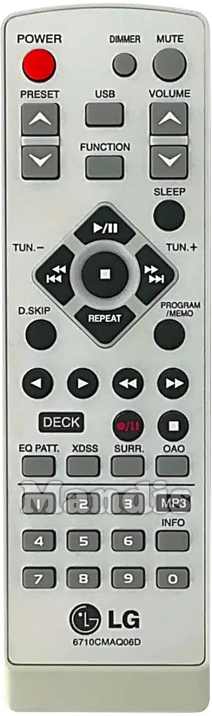 Fernbedienung Original 6710CMAQ06D zur Steuerung der Hi-Fi-Anlage der Marke LG. Es handelt sich um eine Originalfernbedienung.