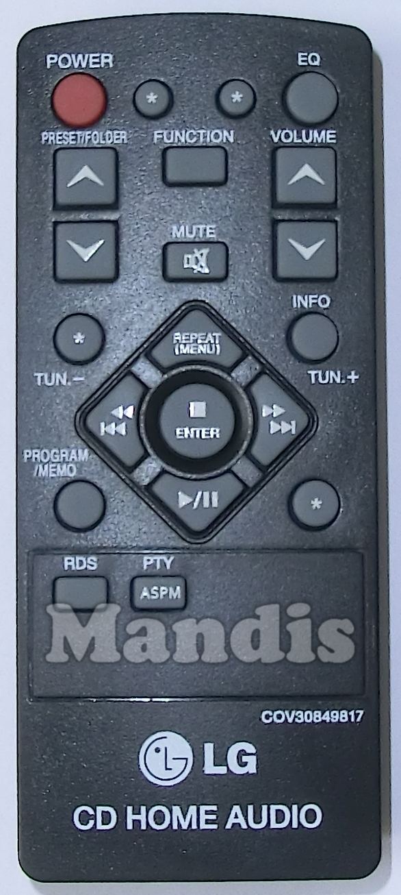 Fernbedienung Original COV30849817 zur Steuerung der Hi-Fi-Anlage der Marke LG. Es handelt sich um eine Originalfernbedienung.