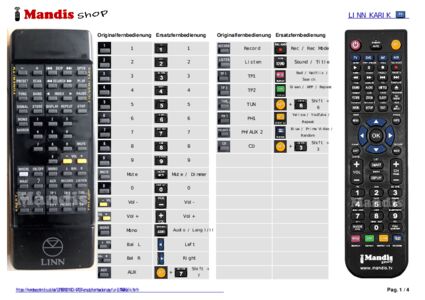 Diese Fernbedienung ersetzt die meisten Funktionen Ihres Karik. Es ist keine Universalfernbedienung, sondern eine Kopie mit den meisten Tasten und Funktionen Ihres Originals.