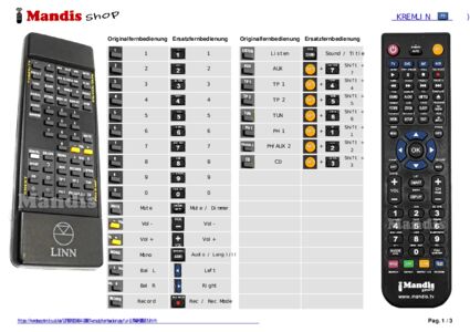 Ein Dokument ist enthalten, um die Verwendung der neuen Fernbedienung zu erleichtern, indem es die Tastenbelegung zeigt.