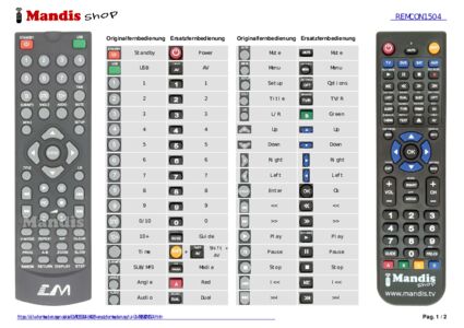 Diese Fernbedienung ersetzt Ihre REMCON1504 in vollem Umfang und bietet alle Funktionen des Originals.