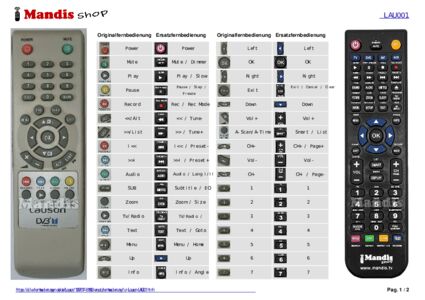 Diese Fernbedienung ersetzt Ihre LAU001 in vollem Umfang und bietet alle Funktionen des Originals.
