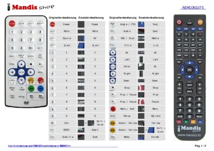 Ein Dokument ist enthalten, um die Verwendung der neuen Fernbedienung zu erleichtern, indem es die Tastenbelegung zeigt.
