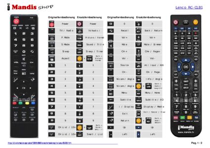 Ein Dokument ist enthalten, um die Verwendung der neuen Fernbedienung zu erleichtern, indem es die Tastenbelegung zeigt.