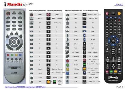 Ein Dokument ist enthalten, um die Verwendung der neuen Fernbedienung zu erleichtern, indem es die Tastenbelegung zeigt.