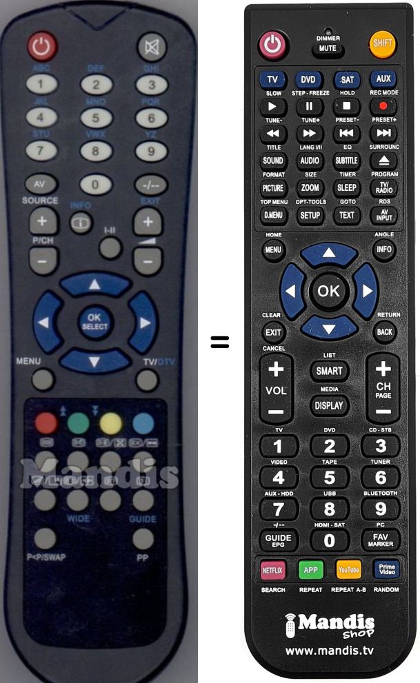 Es handelt sich jedoch nicht um eine Universalfernbedienung sondern um eine Fernbedienung die das Original ersetzt.