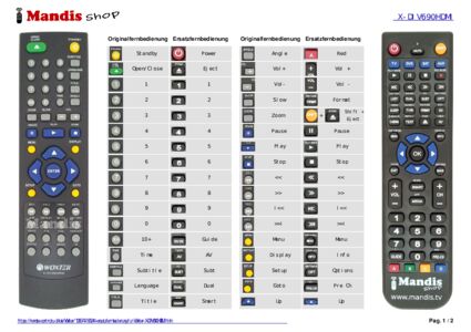 Ein Dokument ist enthalten, um die Verwendung der neuen Fernbedienung zu erleichtern, indem es die Tastenbelegung zeigt.