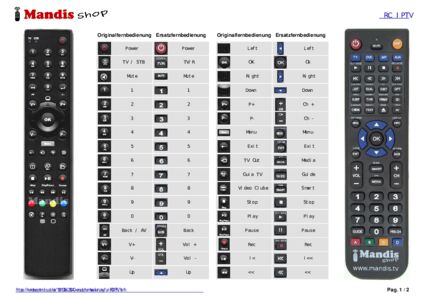 Ein Dokument ist enthalten, um die Verwendung der neuen Fernbedienung zu erleichtern, indem es die Tastenbelegung zeigt.
