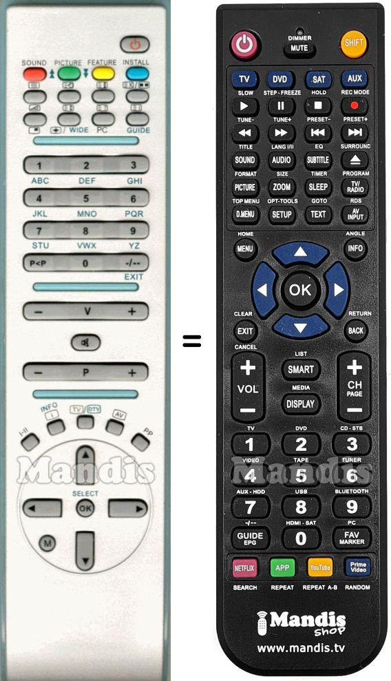 Im Gegensatz zu Universalfernbedienungen verfügt diese Fernbedienung über alle Funktionen Ihres Originalgeräts. Jede Taste wurde kopiert, um den korrekten Betrieb zu gewährleisten.