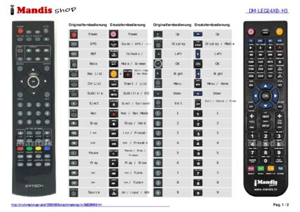 Ein Dokument ist enthalten, um die Verwendung der neuen Fernbedienung zu erleichtern, indem es die Tastenbelegung zeigt.