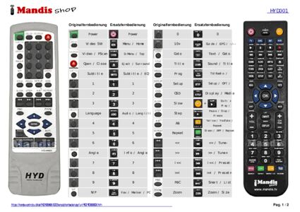 Ein Dokument ist enthalten, um die Verwendung der neuen Fernbedienung zu erleichtern, indem es die Tastenbelegung zeigt.