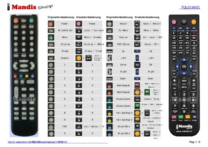 Ein Dokument ist enthalten, um die Verwendung der neuen Fernbedienung zu erleichtern, indem es die Tastenbelegung zeigt.