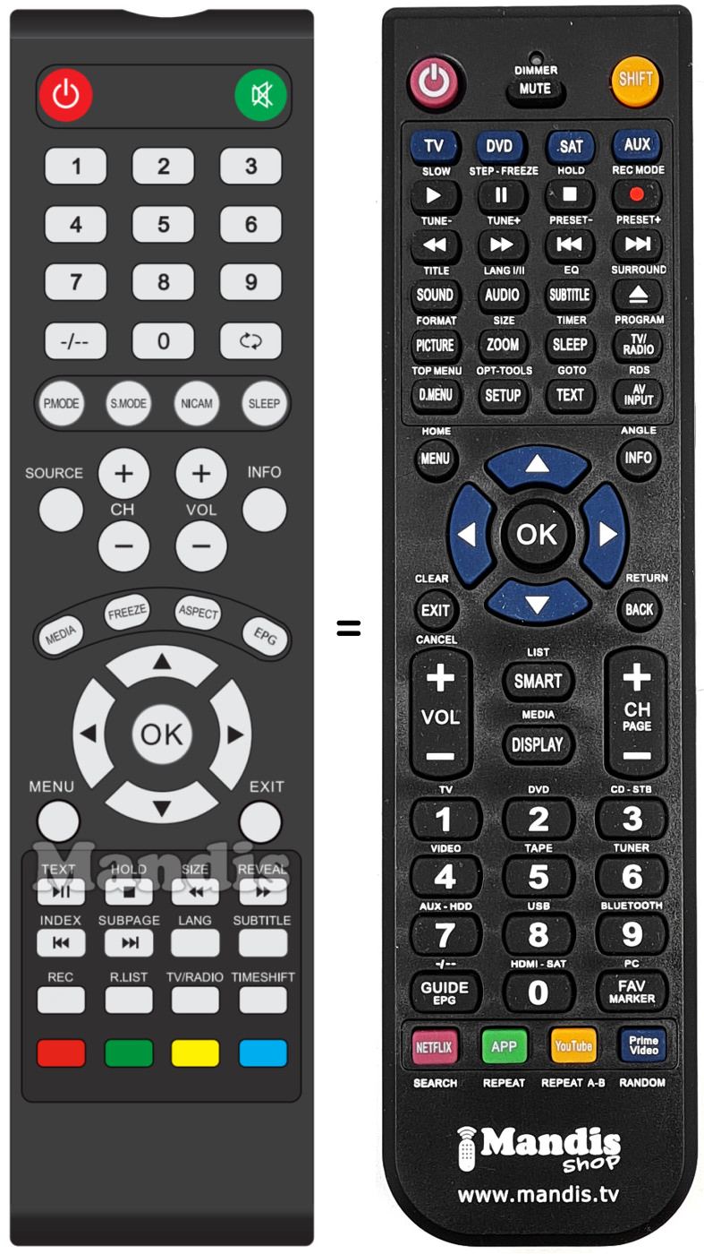 Es handelt sich jedoch nicht um eine Universalfernbedienung sondern um eine Fernbedienung die das Original ersetzt.