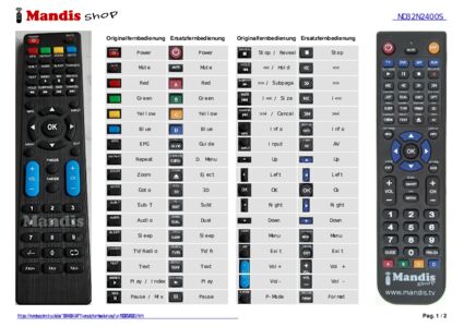 Diese Fernbedienung ersetzt Ihre ND32N2400S in vollem Umfang und bietet alle Funktionen des Originals.