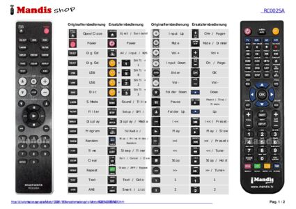 Ein Dokument ist enthalten, um die Verwendung der neuen Fernbedienung zu erleichtern, indem es die Tastenbelegung zeigt.