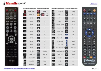 Diese Fernbedienung ersetzt Ihre RC1173 (30701011100AD) in vollem Umfang und bietet alle Funktionen des Originals.