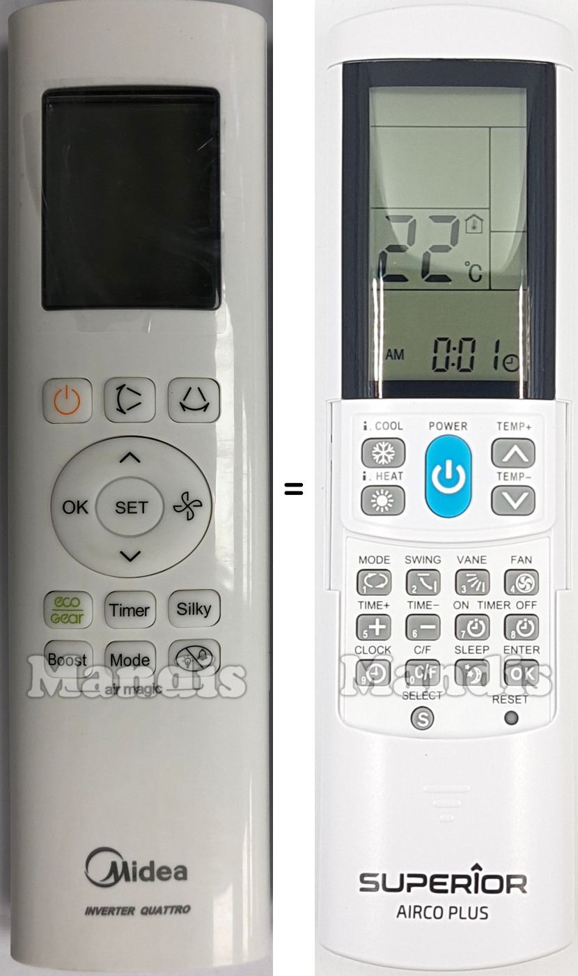 Home > Marken Klimaanlagen > Übersicht der Fernbedienungen für Klimaanlagen der Marke Midea > Universalfernbedienung MIDEA Aircoplus (42530)
