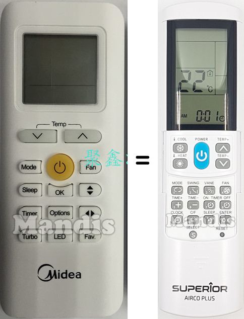 Home > Marken Klimaanlagen > Übersicht der Fernbedienungen für Klimaanlagen der Marke Midea > Universalfernbedienung MIDEA Aircoplus (42530)