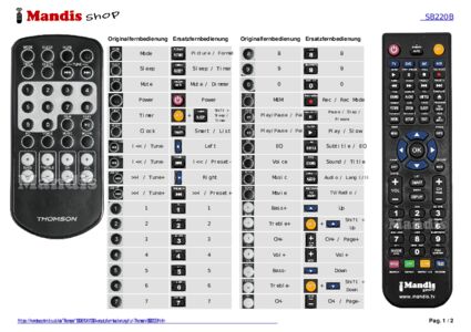 Ein Dokument ist enthalten, um die Verwendung der neuen Fernbedienung zu erleichtern, indem es die Tastenbelegung zeigt.