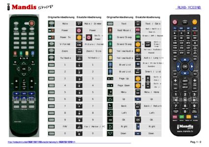 Ein Dokument ist enthalten, um die Verwendung der neuen Fernbedienung zu erleichtern, indem es die Tastenbelegung zeigt.