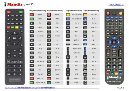 Ein Dokument ist enthalten, um die Verwendung der neuen Fernbedienung zu erleichtern, indem es die Tastenbelegung zeigt.