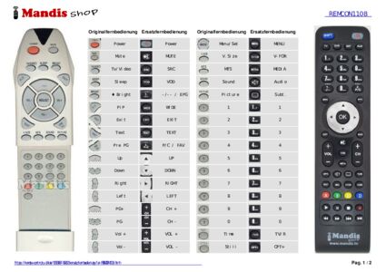 Ein Dokument ist enthalten, um die Verwendung der neuen Fernbedienung zu erleichtern, indem es die Tastenbelegung zeigt.