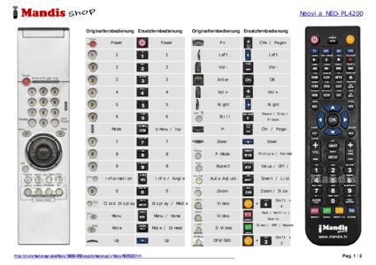 Diese Fernbedienung ersetzt Ihre NEO-PL4200 in vollem Umfang und bietet alle Funktionen des Originals.