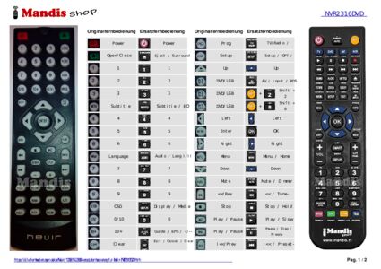 Ein Dokument ist enthalten, um die Verwendung der neuen Fernbedienung zu erleichtern, indem es die Tastenbelegung zeigt.