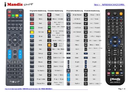 Ein Dokument ist enthalten, um die Verwendung der neuen Fernbedienung zu erleichtern, indem es die Tastenbelegung zeigt.