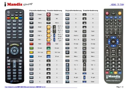 Diese Fernbedienung ersetzt die meisten Funktionen Ihres HD90 Titan. Es ist keine Universalfernbedienung, sondern eine Kopie mit den meisten Tasten und Funktionen Ihres Originals.