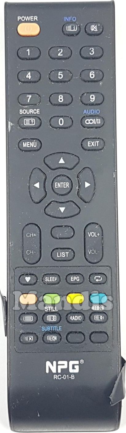 Fernbedienung Original RC-01B zur Steuerung der TV-Geräte der Marke Npg. Es handelt sich um eine Originalfernbedienung.