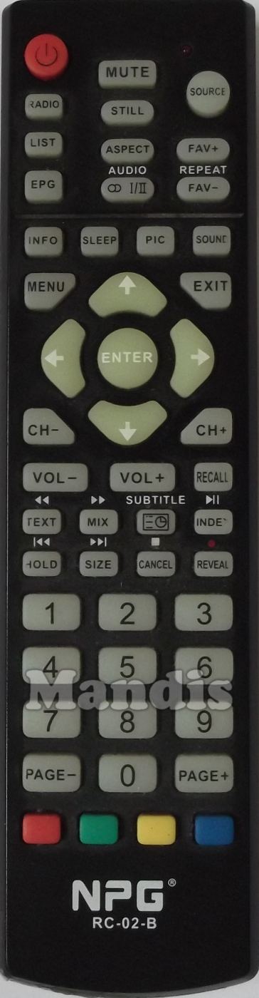 Fernbedienung Original RC-02-B zur Steuerung der TV-Geräte der Marke Npg. Es handelt sich um eine Originalfernbedienung.