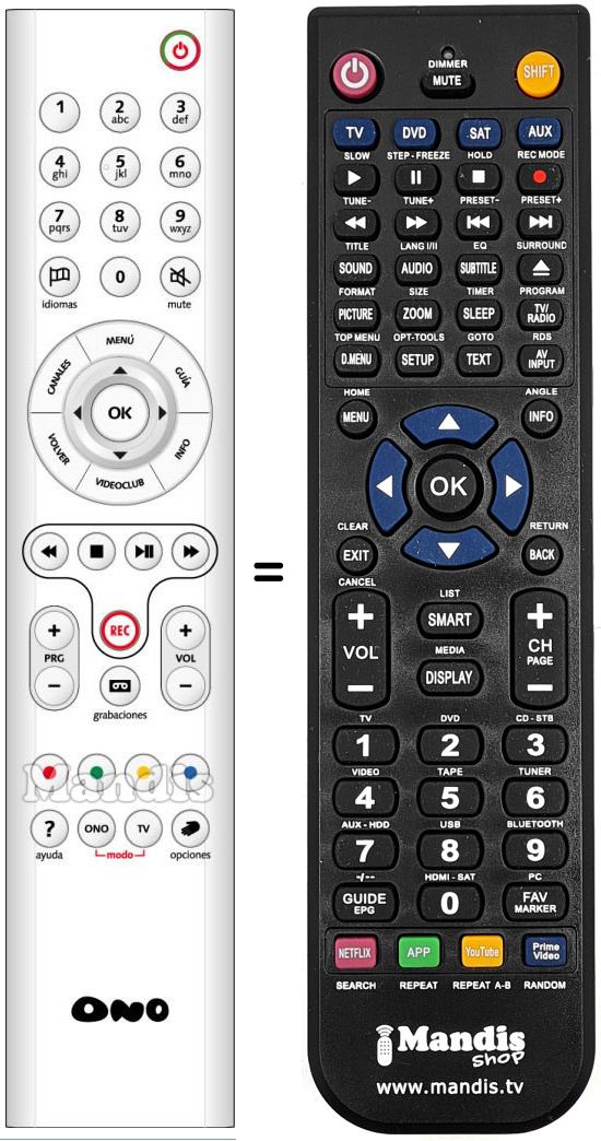 Fernbedienung, die das Original und die Gesamtheit seiner Funktionen, vollständig ersetzt. Es handelt sich jedoch nicht um eine Universalfernbedienung sondern um eine Fernbedienung die das Original ersetzt. Sie erhalten eine nach Einlegen der Batterien sofort einsatzbereite Fernbedienung. Jegliches Programmieren entfällt. Wir geben umfassende Garantie dafür, dass diese Fernbedienung alle Funktionen der Originalfernbedienung erfüllt.