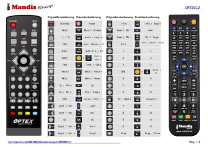 Diese Fernbedienung ersetzt Ihre ORT8910 in vollem Umfang und bietet alle Funktionen des Originals.