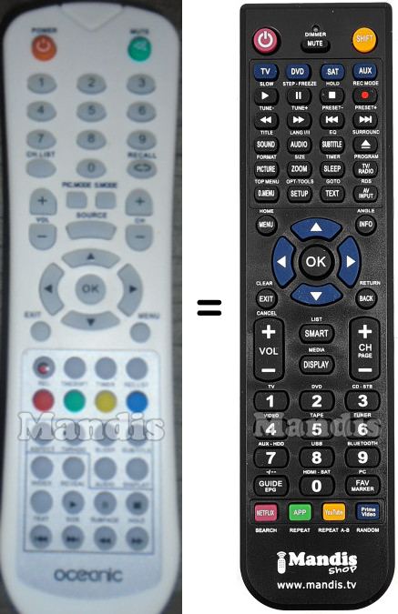 Diese Fernbedienung ersetzt Ihre OCEALED190416W in vollem Umfang und bietet alle Funktionen des Originals.