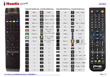 Ein Dokument ist enthalten, um die Verwendung der neuen Fernbedienung zu erleichtern, indem es die Tastenbelegung zeigt.