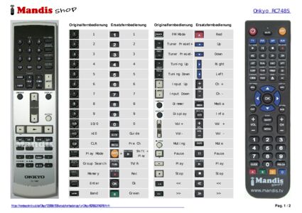 Ein Dokument ist enthalten, um die Verwendung der neuen Fernbedienung zu erleichtern, indem es die Tastenbelegung zeigt.