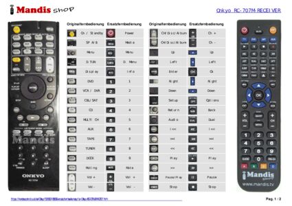 Ein Dokument ist enthalten, um die Verwendung der neuen Fernbedienung zu erleichtern, indem es die Tastenbelegung zeigt.